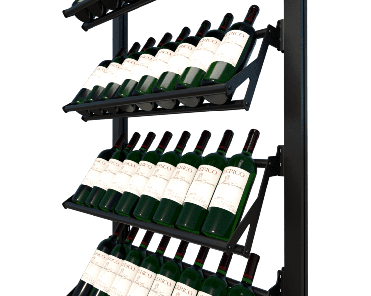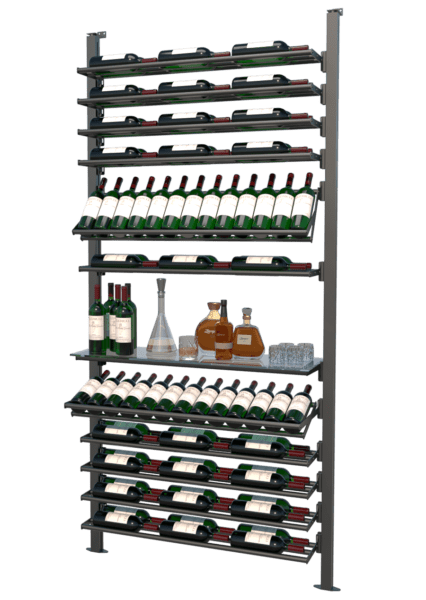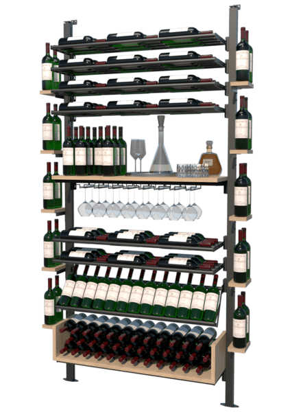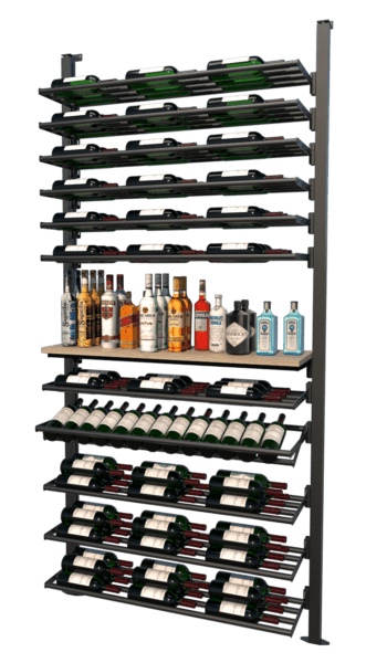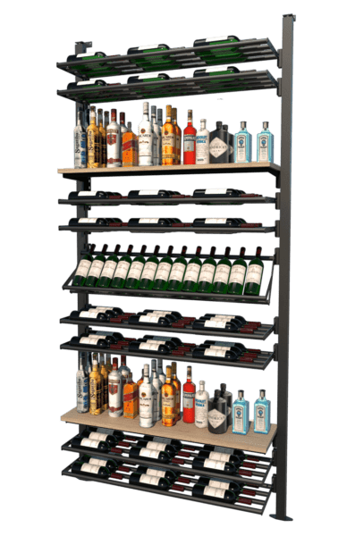 The system is modular, allowing you to arrange shelves and displays in various configurations to suit different spaces and bottle capacities.