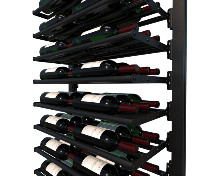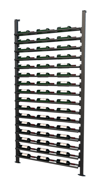 The Frontenac wine rack is constructed from durable aluminum with a black powder-coated finish, combining strength with an elegant look.