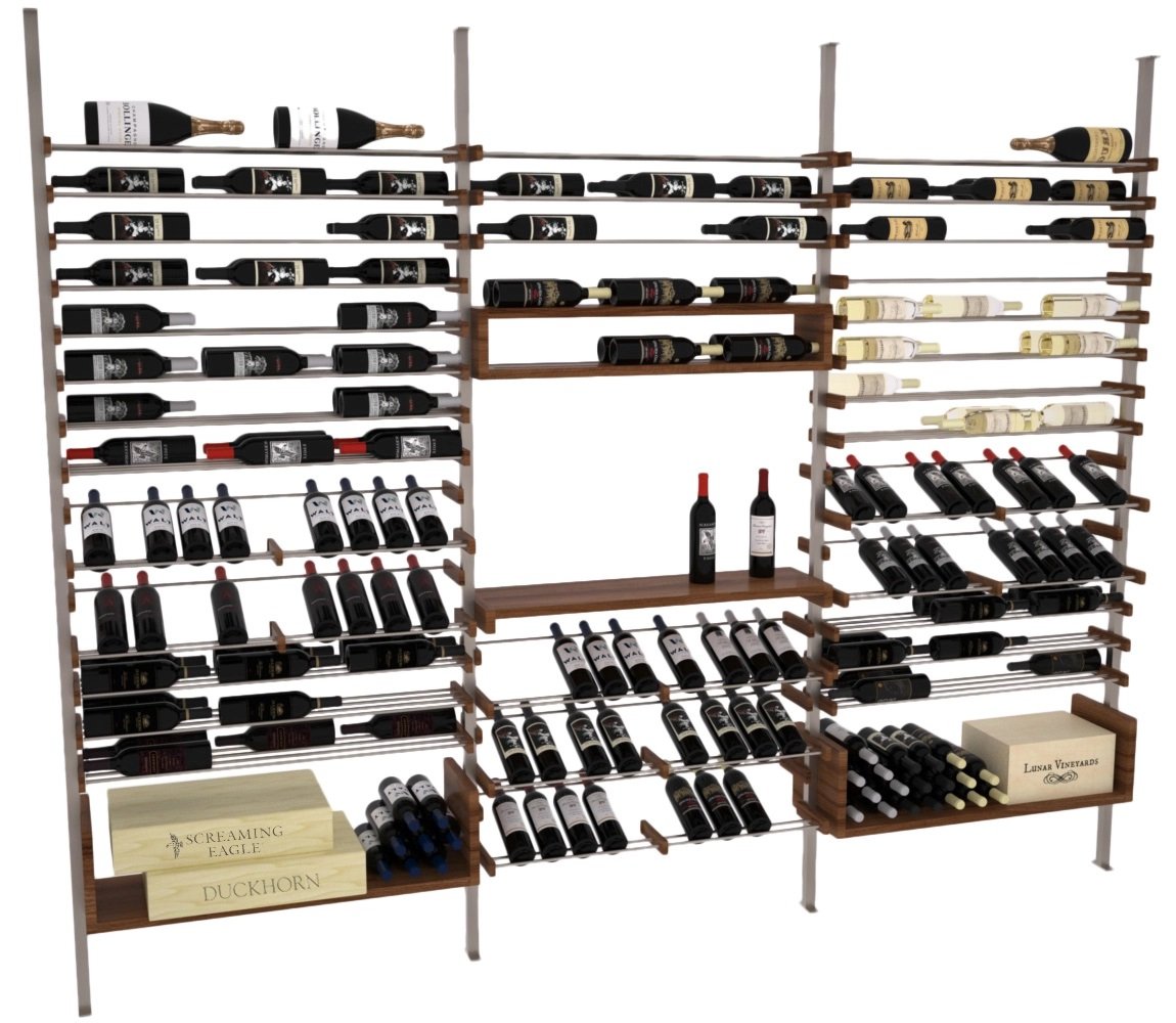 - A Contemporary Wine Rack of its kind that can be modified after installation. Completely interchangeable rack displays and shelves.