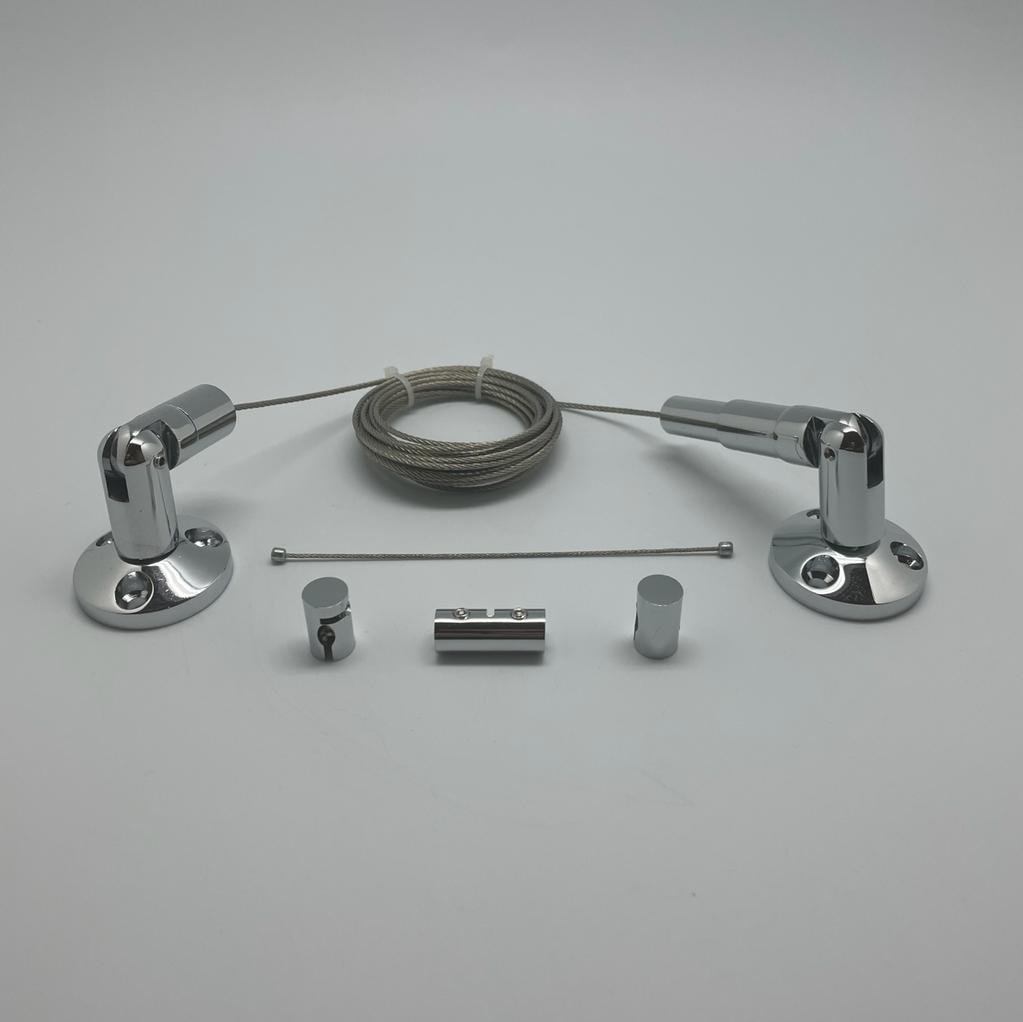 This Cable Wine Rack System is comprised of quality stainless steel cable and chromed solid brass connecting clamps and tension mounts. Available in Chrome, Satin Black, Silver Pearl, and Satin Gold. The CABLE WINE SYSTEMS™ wine racking accommodates the widest variety of bottle shapes and sizes and can also be assembled to meet customer preferences in regards to bottle spacing and/or positioning. Floating shelves or angled displays can also be added for additional interest and appeal.