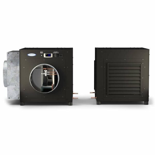 CellarPro’s AH8500Sx-ECX ducted cooling units (1 Ton Nominal) are engineered for wine cellars up to 2,500* cubic feet in both commercial and residential wine cellars. When ducted, this unit uses 10-inch insulated ducting on the cold side, and exterior grills on the hot side.