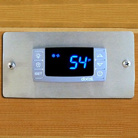 Connected via 10 feet of 18-gauge low voltage wiring, the control panel can be installed anywhere that’s convenient for you, inside or outside the wine cellar. If you’d like more than 10 feet of wire, let us know when you checkout in the “special instructions” field. We charge $0.50 per foot after the first 10 feet.