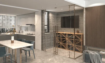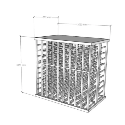 This half-height wine rack is perfect for showcasing a curated selection of wines. While leaving room for other decor elements or storage needs in the space. Despite its compact size, it can accommodate various bottle types. Hence making it a versatile choice for both everyday collectors and those with unique bottles in their collection. The open design allows for easy access to each bottle. While maintaining stability and organization. With its customizable and space-saving design, this modular wine rack offers a practical yet stylish way to display wine in smaller rooms or as part of a larger modular setup.