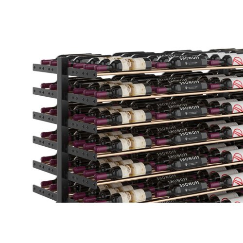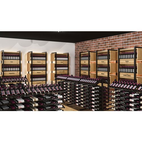 With bottle capacity right to the top of the display, the Max configuration packs in the storage capacity without sacrificing look in any way. The entire display is filled with label-forward bottle storage to make this innovative rack an evolving work of art. This double-sided unit can serve as a wine cellar centerpiece or create remarkable retail aisles.