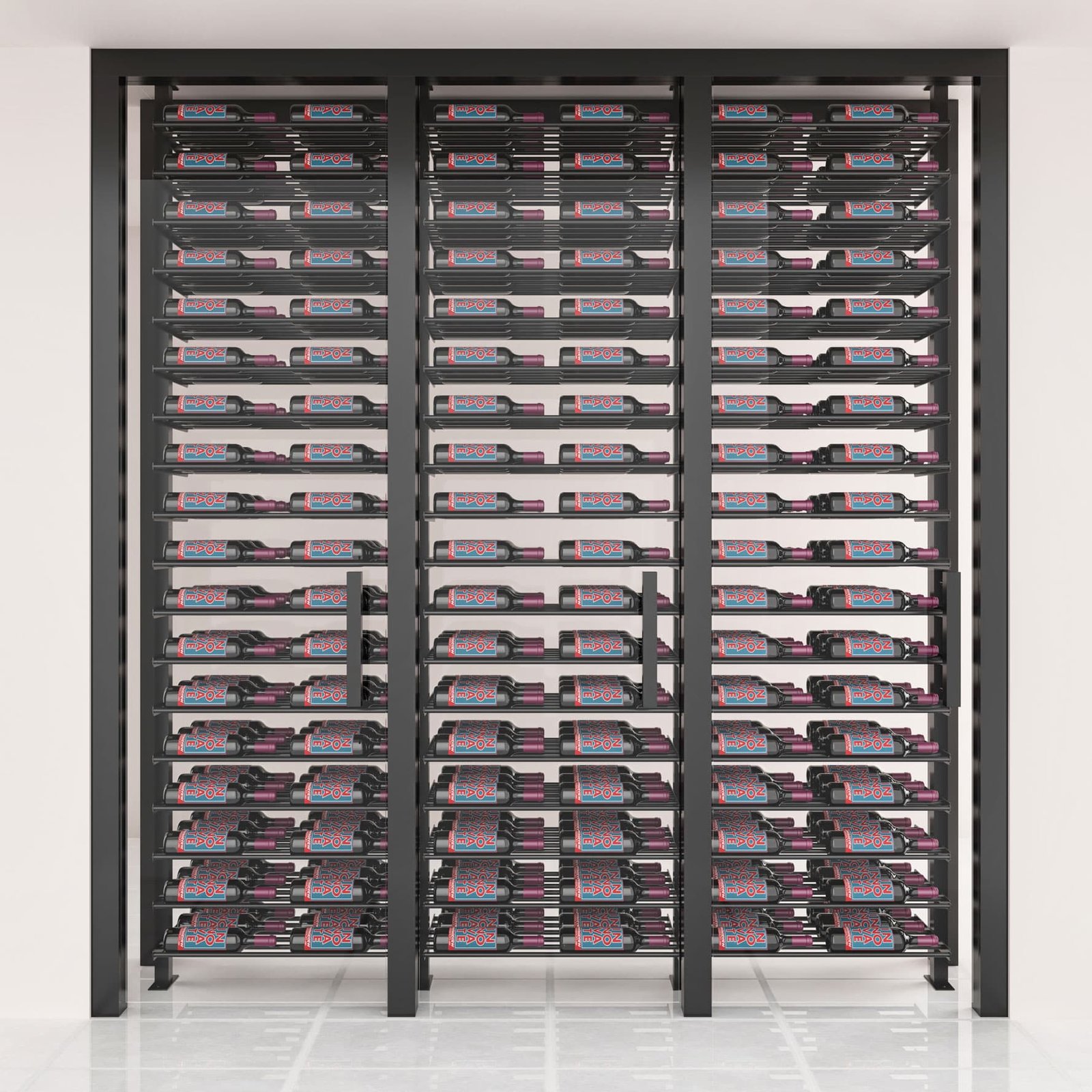 Starting at just 3″ in total depth, the Low Profile Wine Wall Post 10′ Wine Rack Kit offers the slimmest way imaginable to store wine bottles label forward. This floating wine rack kit mounts to the floor and ceiling and can hold up to 162 bottles of wine in a stunning, minimalist fashion creating an industrial-chic architectural feature in custom commercial and residential wine rooms. This floating wine rack kit comes with everything you need to assemble a floor-to-ceiling column wine rack using our ground-breaking, label-forward Evolution Wine Wall system.