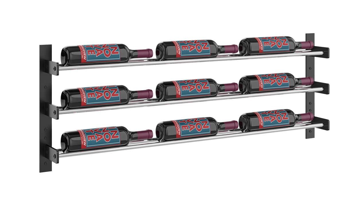 VintageView’s Evolution Wine Wall system is a modular wine rack that blends contemporary label-forward design with smart functionality perfect for home and commercial wall-mounted storage projects, small to large. This stylish system uses steel Wine Rods to hold standard, Champagne, Pinot Noir, or magnum bottles — all in the same row. VintageView’s proprietary design allows for sturdy installation — using commercial-strength steel supports — into both drywall and wood-backed surfaces. Perfect for your everyday drinkers or your valuable Bordeaux vintages.