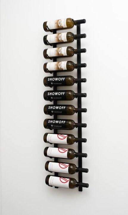 Evolution mounted wine rack system is a modular wine rack that blends contemporary label-forward design with smart functionality perfect for home and commercial wall-mounted storage projects, small to large. This stylish system uses steel Wine Rods to hold standard, Champagne, Pinot Noir, or magnum bottles — all in the same row. VintageView’s proprietary design allows for sturdy installation — using commercial-strength steel supports — into both drywall and wood-backed surfaces. Perfect for your everyday drinkers or your valuable Bordeaux vintages.