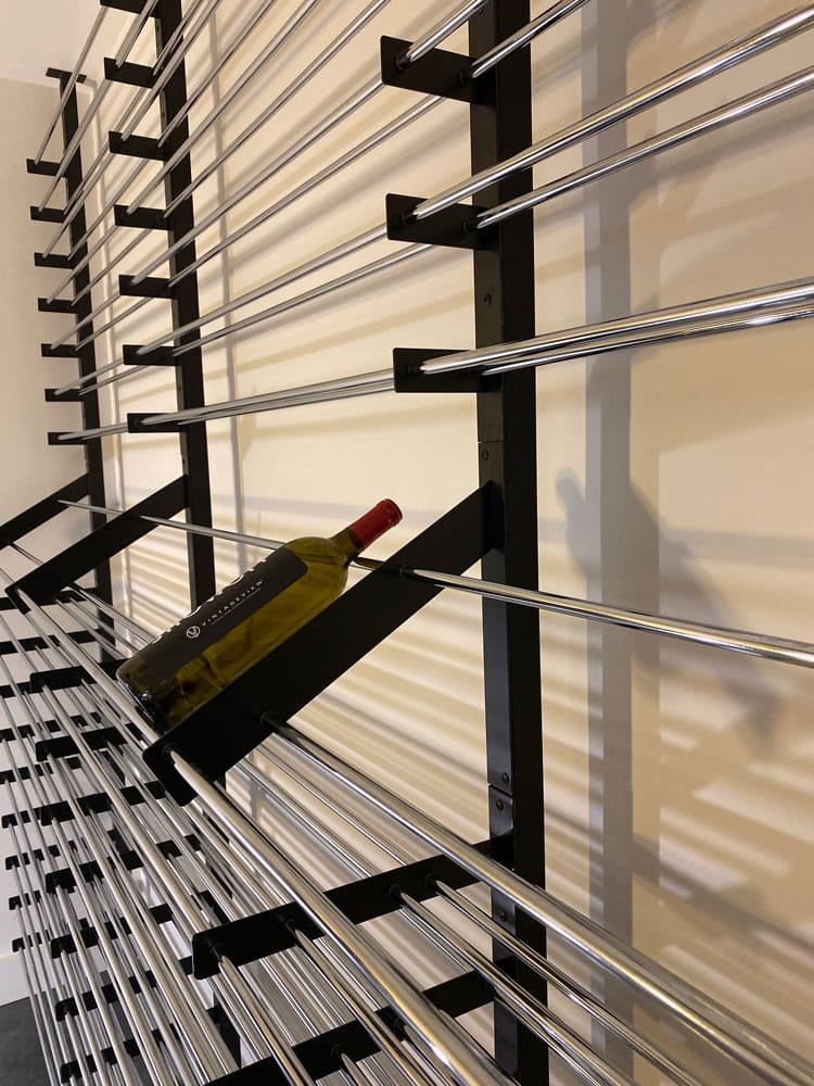 - MINIMALIST WINE STORAGE: Take your wine collection off the wall by creating single- or double-sided floating wine racks. Hardware to install Evolution Wine Wall Racks to Frame and 1 welded Base Plates and 1 base plate insert included.