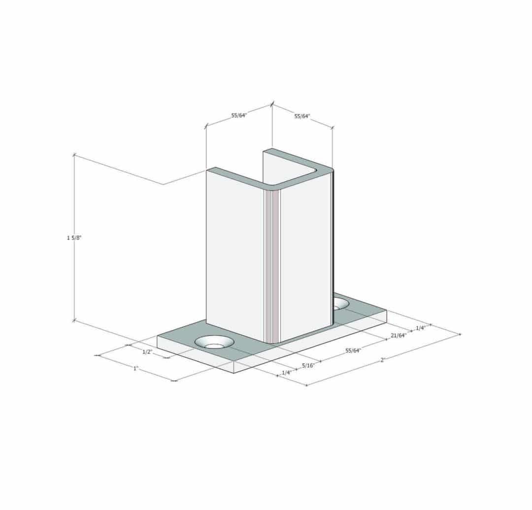 The Floor-to-Ceiling Hidden Base Plate is a minimalist version of the standard base plate, removing the connecting steel between supports. Each set includes two pieces, enough to mount one end of an FCF-HD.