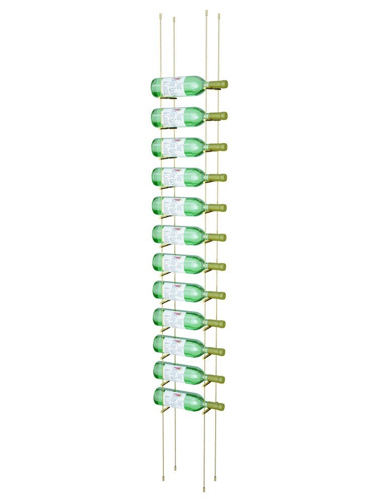 Build your own Invisible Cables Wine System with a pair of gold pegs that includes both bottom bottle and neck support. This customizable setup allows you to design your wine display to perfectly showcase your collection, letting you adjust the number of bottles per column while keeping labels visible. It’s a stylish, space-saving solution that lets your wine float elegantly on the wall.