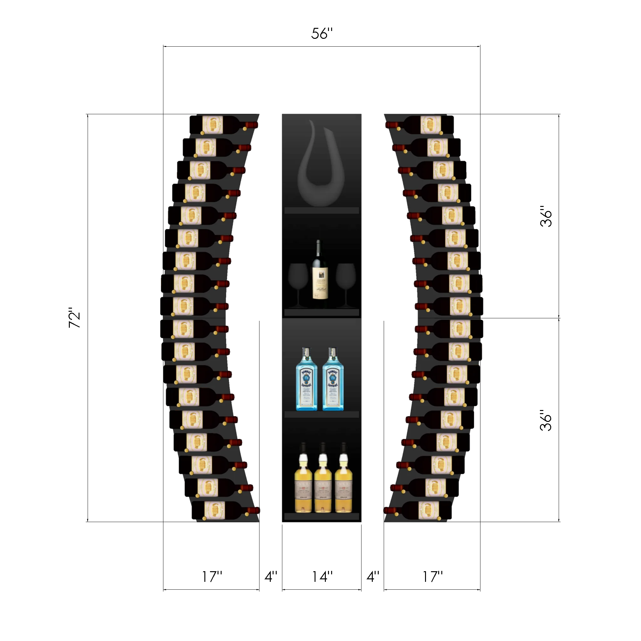 Accent Lighting** – Include standoff panels with LED perimeter lighting and undershelf lighting for the middle column of this display to really bring your wine wall to life! Everything you’ll need to add this effect is included with the “Accent Lighting” add-on: