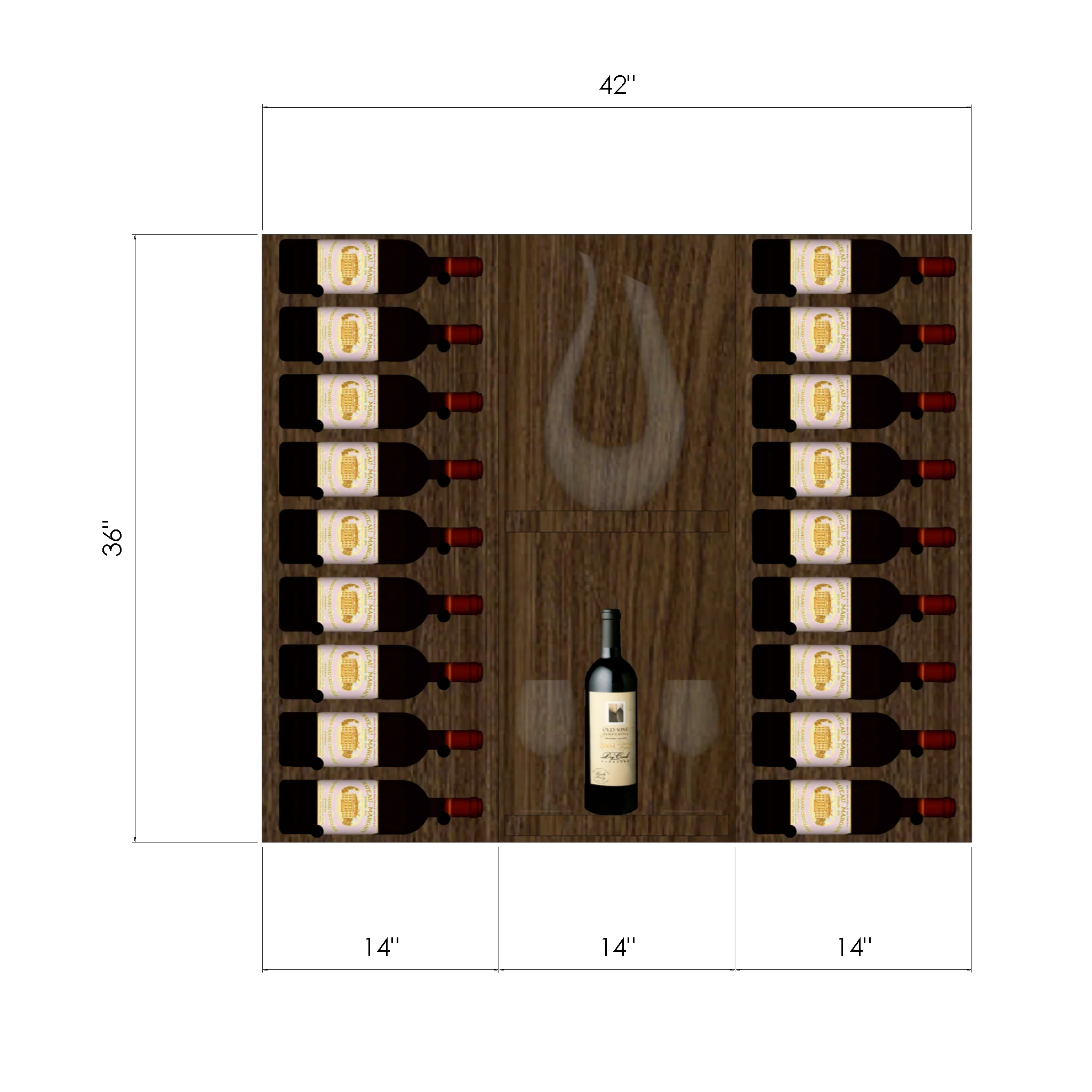 – Triple Bottle Deep Option: 11 3/4″ (add 3/4″ for lighting add-on)
