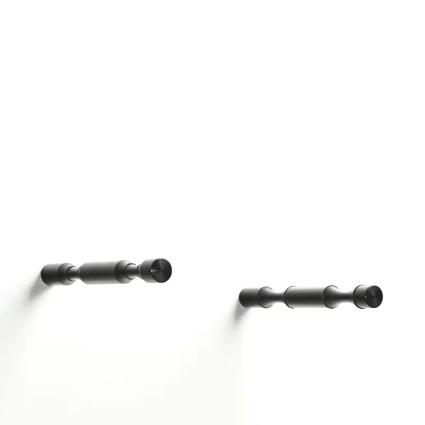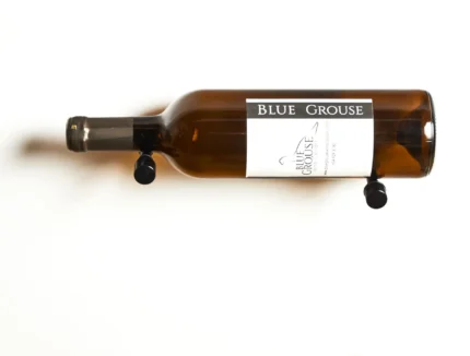 This pair of VINdustry mounted wine holder peg supports and displays two standard 750ml wine bottles, one in front of the other.