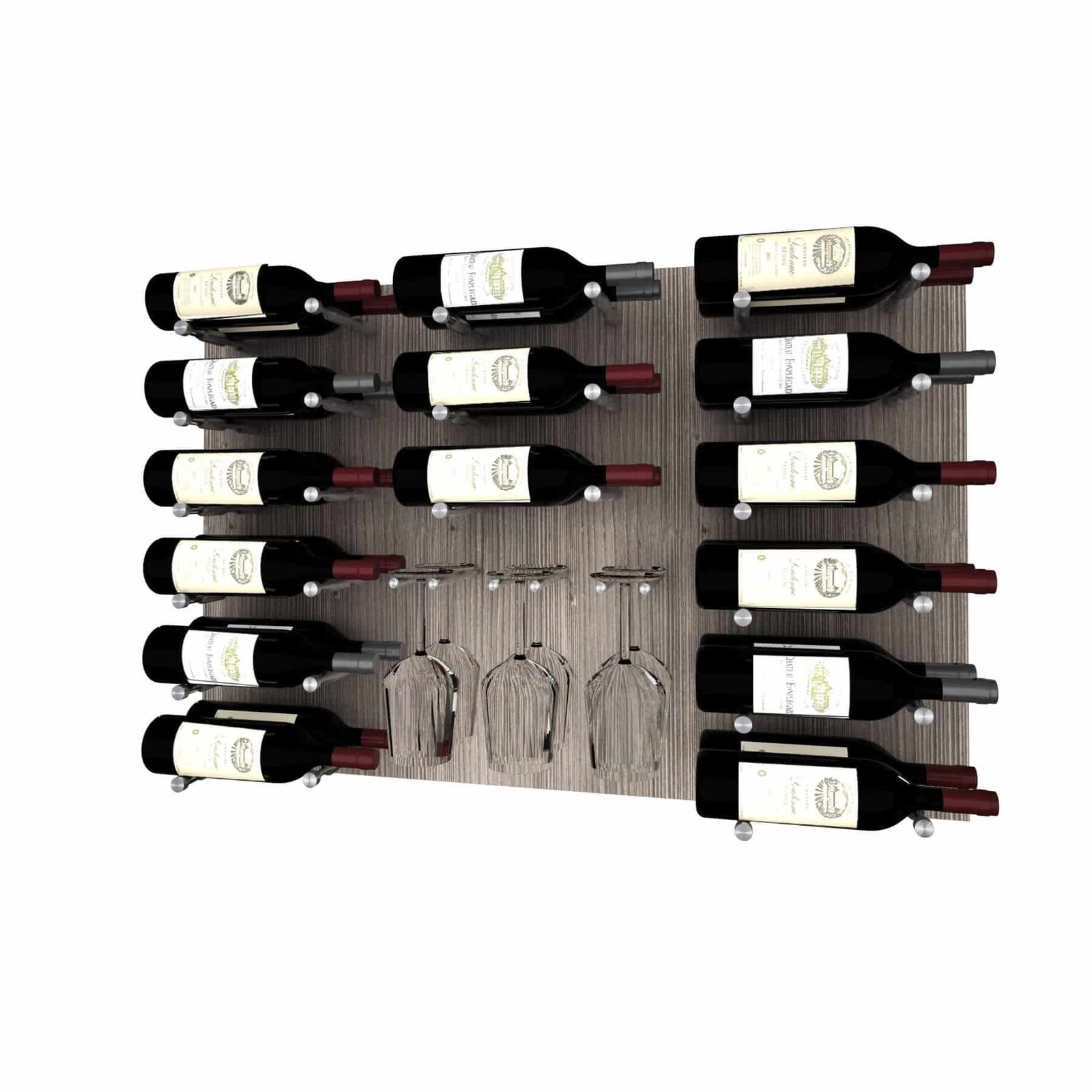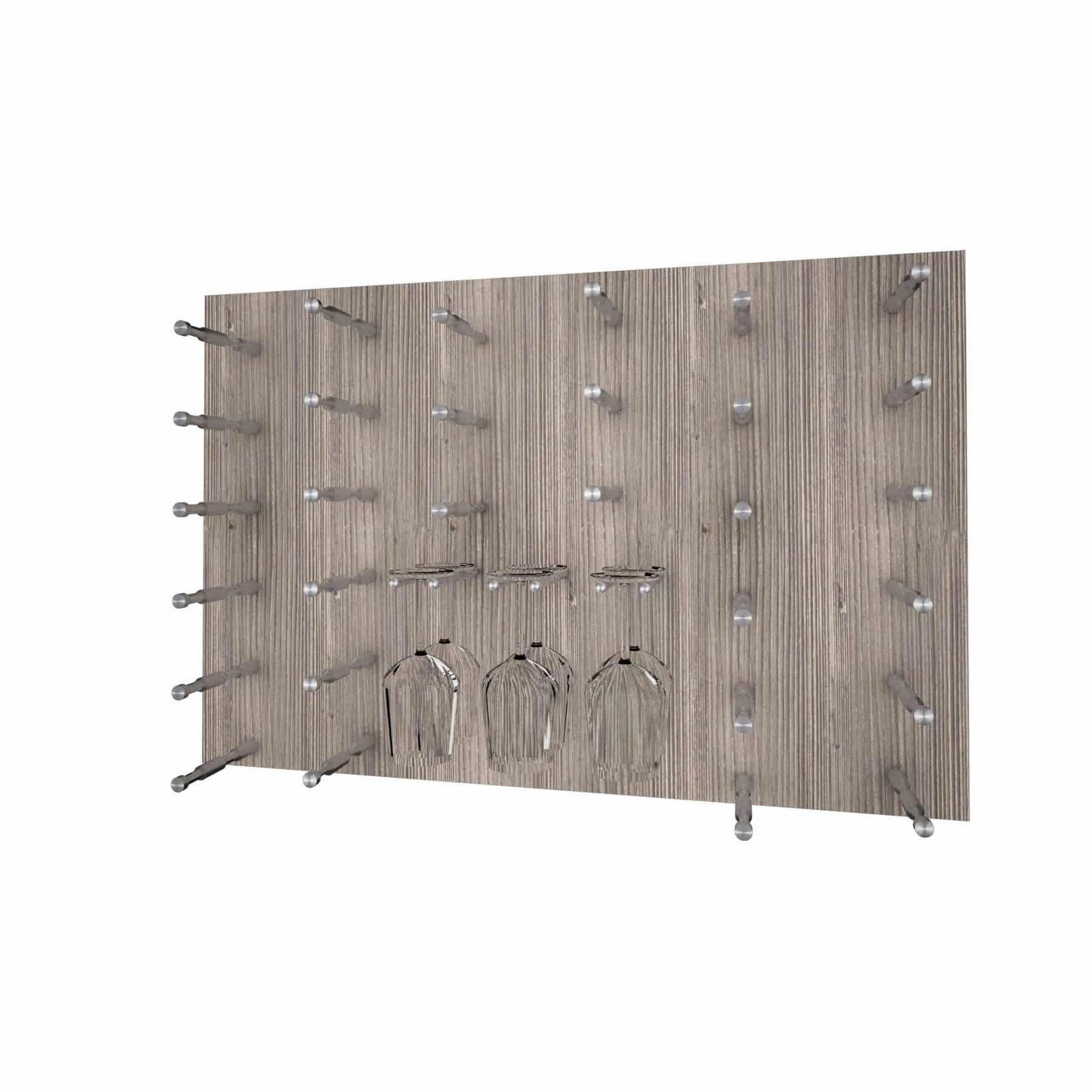 Wine wood panels are designed to be unique wall mounted wine storage and wine display systems. Each design has a different wine configuration, bottle count and accessories. The wine wood panels are engineered to be easily and securely installed utilizing the supplied ‘structural’ back panel method. Just select your panel option and hardware color to customize this design. You can also paint, stain or paper unfinished wood panels to match your space.